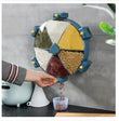 Rotating Wall-Mounted Food Grains Storage Box – A smart, space-saving dispenser with 6 compartments for organizing and easily accessing a variety of dry food items like grains, pulses, rice, and cereals.