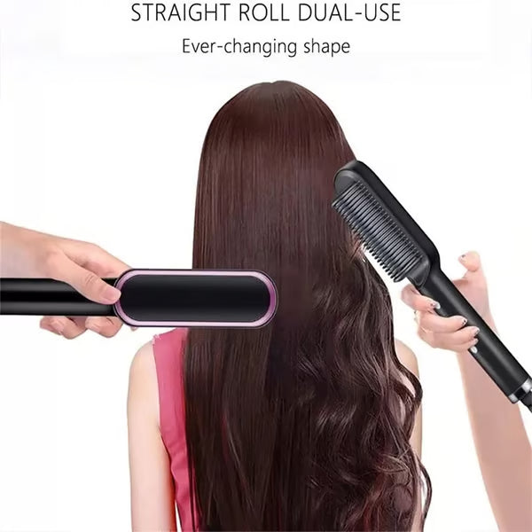 Straightening Hair Styler gives you a lively and bouncy effect, not completely press down your hair, rather than a flat burnt look and leaves your hair easy to manage. Just brush your hair once and dull hair into gorgeous shiny and sleek looking.
